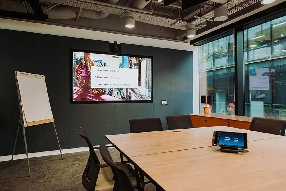 Para cada sala es necesario, como mínimo, un ordenador macOS o Windows en el que se ejecute el software de Zoom Rooms, y un iPad, o tableta Android o Windows 10 en la que se ejecute la aplicación Zoom Rooms.